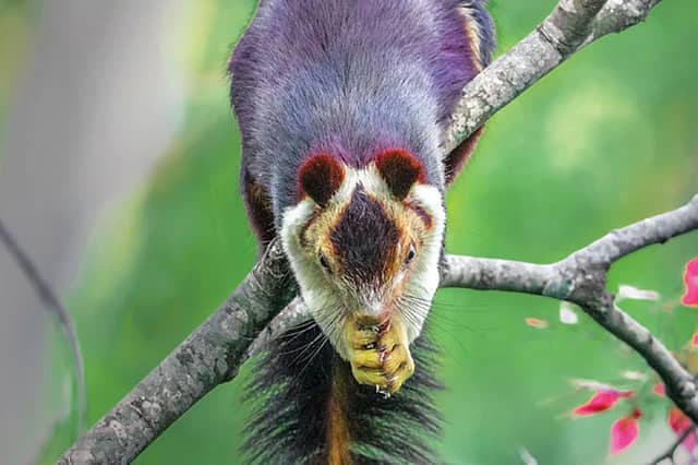 The Grizzled Squirrel Wildlife Sanctuary, also known as Srivilliputhur Wildlife Sanctuary, was established in 1988 to protect the near-threatened grizzled giant squirrel. Occupying an area of 485sq km, it is bordered on the southwest by the Periyar Tiger Reserve and is one of the best preserved forests south of the Palghat Gap. The topography consists of high hills and valleys, with a number of peaks reaching up to 1,800 metres.