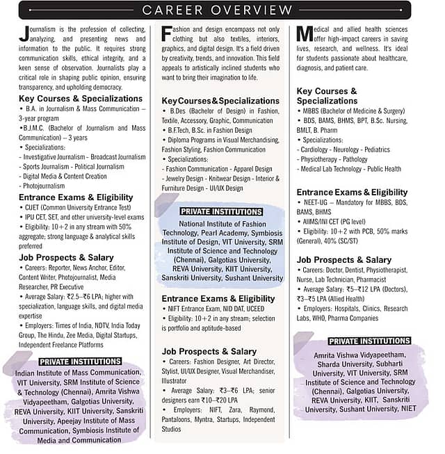 Choosing the right career path after Class 12 is one of the most crucial and life-defining decisions for any student. After years of structured schooling, the post-12th phase is often the first time students face an open-ended choice that could shape their future—professionally and personally. The growing number of career options available today is both a blessing and a challenge. From conventional fields like engineering and medicine to creative industries like design, journalism, and hospitality, the choices are vast and varied. However, this abundance can also lead to confusion and anxiety.