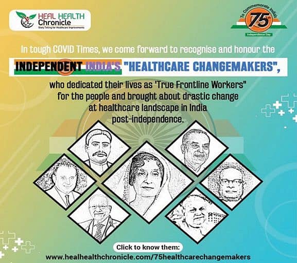 To commemorate the 75th anniversary of India's Independence, Govt. of India has launched "Azadi Ka Amrit Mahotsav" India@75. Taking inspiration from the Govt. of India's initiative, HEAL HEALTH launches a 'Coffee Table Book' on 75 Healthcare Changemakers in India since Independence. This is a unique first of its kind compendium being published under the aegis of HEAL Health Chronicle.