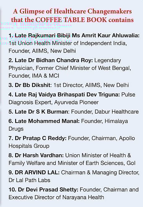 The role of change-makers in the healthcare landscape in India has been immense. Starting from Ms Rajkumari Bibiji Amrit Kaur Ahluwalia, the first Union Health Minister of independent India and Dr B C Roy to the modern-day specialist physicians, surgeons, healthcare entrepreneurs, founders of pharma companies, philanthropist medicos, public health experts and other specialists, who have revolutionised the healthcare landscape of India by virtue of their path-breaking accomplishments in their respective domains.