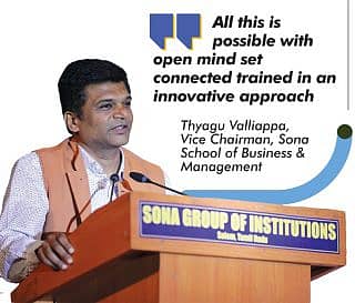 The focus is to create more & more value for our students who make a big difference to society & Business community. Our focus on creating a business venture where students are involved in live projects where Faculty & Industry mentors get involved and solve various problems for MSME's & Large MNC has been very successful, says our Vice Chairman Mr Thyagu Valliappa. Creating an ecosystem for youngsters to start their own company using the Management & Technology (MAT) platform better known as Technology Super Market. Our students from Engineering & Management work together and take up joint projects and this in a way is a super speculation concept.