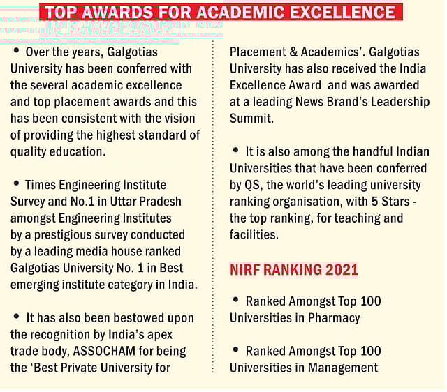 At Galgotias University, the focus has firmly been on multidisciplinary research and education. "The education dissemination model has been carefully curated to impart it with the flexibility of adapting to online, offline & hybrid learnings." says Aradhana Galgotia, Director Operations Galgotias University. It is this versatility that enabled it to face up to the challenges posed by the COVID19 pandemic and now equips it to seamlessly switch back to offline & hybrid classrooms. The university, in pursuing its aspirations to be globally celebrated for offering innovation at the intersection of disciplines, has set an example for other academic institutions in India to follow.