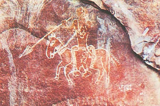 AMARGUFA is situated about 11 kilometres south of Sonabarsa village, and just 2 kilometres from Kharsiya on the main road. Here animal figures, human figures, hunting scenes, etc are depicted.