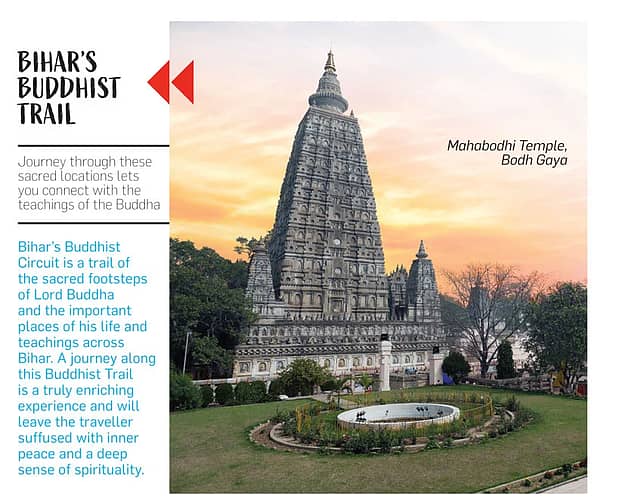 Bihar's Buddhist Circuit is a trail of the sacred footsteps of Lord Buddha and the important places of his life and teachings across Bihar. A journey along this Buddhist Trail is a truly enriching experience and will leave the traveller suffused with inner peace and a deep sense of spirituality. So, whether you are a devoted Buddhist seeking enlightenment or a curious traveller interested in history and spirituality, Bihar's Buddhist sites offer a unique experience. The journey through these sacred locations lets you connect with the teachings of the Buddha, soak in the tranquillity of the surroundings, and immerse yourself in a profound spiritual experience. As you explore these sites, you'll find that Bihar is not just a destination; it's a spiritual journey that can leave a lasting impact on your soul.