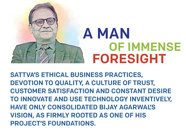 Commercial projects amounting to 25 million square feet in Bengaluru alone are also in the works. In 30 years, Sattva has transcended mere business-speak—it is now a legitimate Empire, one held together by faith, prescience and just good old values. Clearly, the Sattva empire is here to stay. Sattva's ethical business practices, devotion to quality, a culture of trust, customer satisfaction and constant desire to innovate and use technology inventively, have only consolidated Bijay Agarwal's vision, as firmly rooted as one of his project's foundations. Above all, Bijay Agarwal advocates financial discipline and transparency—two aspects crucial to Sattva's progression as a trusted brand that people love to work with. But never one to be content with what's accomplished, it wouldn't be surprising if the Group pushed the boundaries even further. There's much more to see over the horizon.