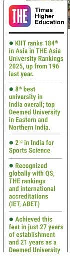 Like every year, the Times Higher Education (THE) Asia University Rankings have been announced, and KIIT Deemed to be University, Bhubaneswar has once again achieved a remarkable position. In the 2025 edition, KIIT has secured the 184th rank in Asia, marking a significant improvement from last year's position of 196. This advancement reaffirms KIIT's steady progress and its growing recognition in the realm of global academic excellence.