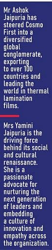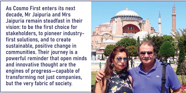 As Cosmo First enters its next decade, Mr Jaipuria and Mrs Jaipuria remain steadfast in their vision: to be the first choice for stakeholders, to pioneer industry-first solutions, and to create sustainable, positive change in communities. Their journey is a powerful reminder that open minds and innovative thought are the engines of progress—capable of transforming not just companies, but the very fabric of society.