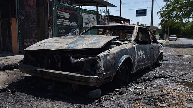 In Guadalajara, burning vehicles blocked roads.
