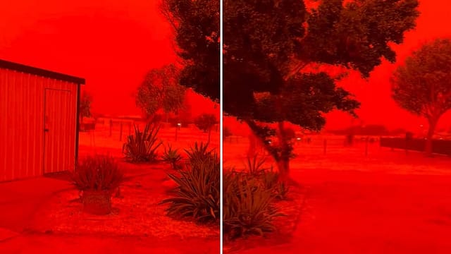 The sky over parts of Western Australia turned a dramatic blood-red as massive dust storms triggered by Tropical Cyclone Narelle swept through the region, creating an eerie spectacle that left residents stunned.